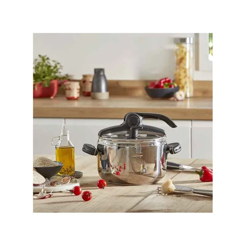 Les cuissons de vos plats sont maîtrisées grâce à l’unique programme de cuisson et au fond Irradial qui optimise la diffusion de la chaleur. Il suffit de tourner la soupape d’un quart de tour pour faire sortir la vapeur à la verticale après une montée en température rapide.
