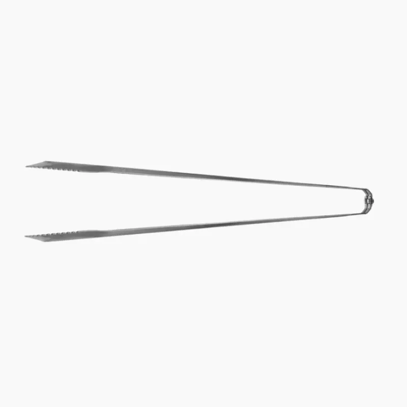 - La Pince XL : la pince en acier inoxydable finition stonewashed fait 40 cm de longueur, assurant une manipulation facile et sécurisée. Sa tête asymétrique permet d’agripper les grosses pièces avec l’angle large cranté et de saisir les plus petites avec l’angle étroit. Elle possède également une fente lève-grille au talon.