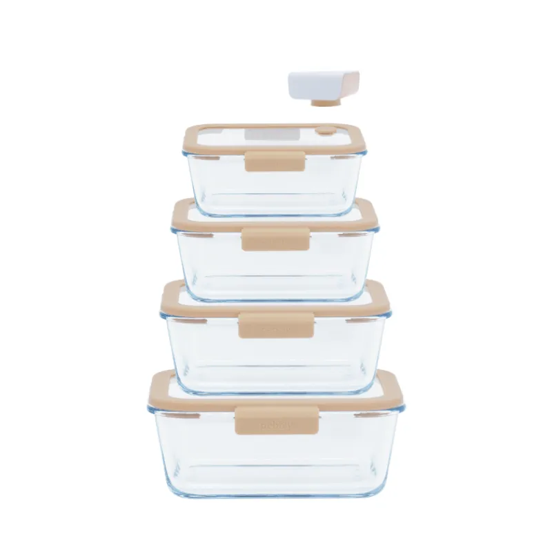 Ces boites sont conçues en verre avec un joint en silicone, pour qu’elles soient parfaitement hermétiques. Sur le couvercle de chaque boîte, vous disposerez d’une valve à vide d’air, pour obtenir une mise sous-vide rapidement, en utilisant la pompe présente dans le coffret !