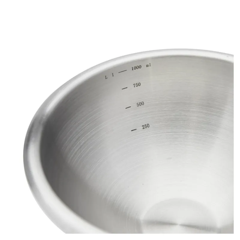 Ce bol demi-sphérique au fond rond traditionnel, assure une préhension ergonomique pour mélanger et fouetter facilement sans éclabousser. Il favorise l’intégration de l’air dans vos recettes. Son fond recouvert de silicone et légèrement plat permettent une excellente stabilité et une utilisation sécurisée. Vous apprécierez également le marquage laser permanent : graduation intérieure pour un dosage des quantités.