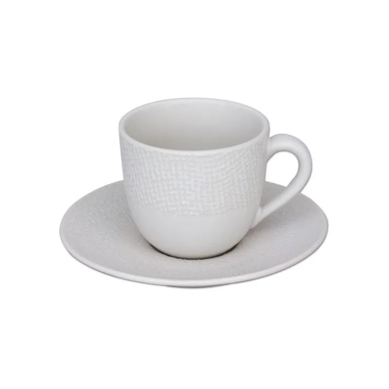 Table Passion met à l’honneur le grès pour la collection Vésuvio Blanc. Appréciez le relief et la texture de cette matière sur cette tasse et sous-tasse de la collection de Table Passion.