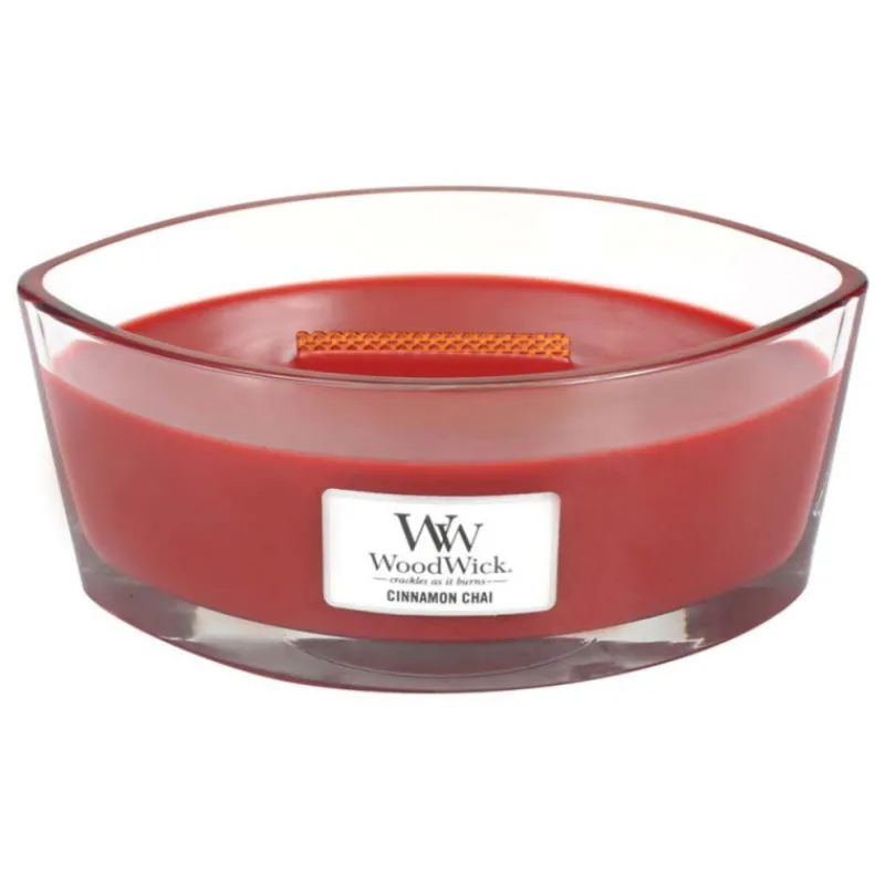 La bougie parfumée ellipse Chaï à la cannelle de Woodwick diffuse un parfum ensorcelant grâce à une association de senteurs uniques et des matières premières de grande qualité.