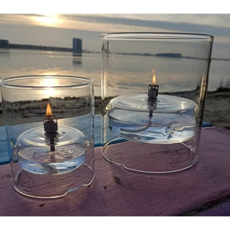 Les lampes Peri Living sont à remplir d’huile de paraffine Peri Living afin d’éviter tout endommagement des lampes. La combustion est inodore et sans fumée, dès lors que la mèche est réglée correctement (max 2mm). La mèche est en fibre de verre et ne s’use pas.