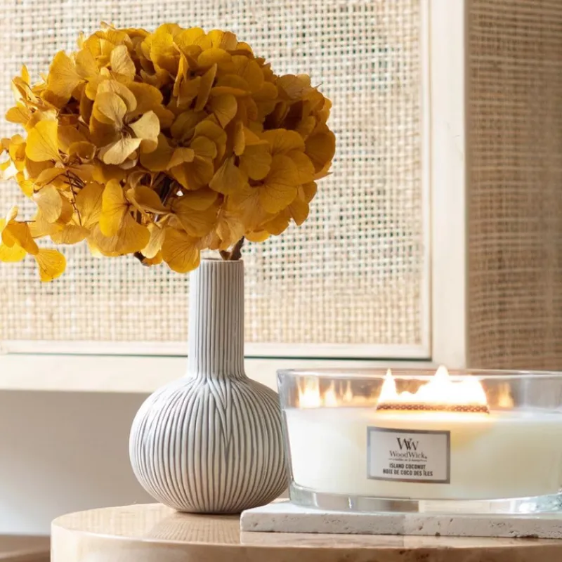La bougie Ellipse parfumée Woodwick Noix de coco des iles embaume votre intérieur d’une agréable odeur et crée ainsi une atmosphère cosy dans laquelle vous vous sentirez merveilleusement bien.