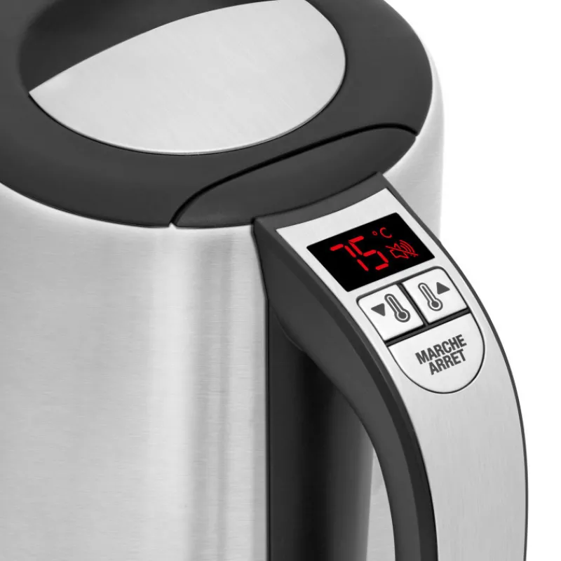 Très simple d’utilisation, la bouilloire Ella de 1L vous permet d’adapter la température de votre eau au type de boissons préparées grâce à une température sélectionnable de 50 à 100°C par paliers de 5°C avec Maintien au chaud automatique 30 minutes. Chaque préparation sera donc infusée à la bonne température : thés verts, blancs, noirs, oolongs, parfumés, infusions, cafés et autres boissons chaudes instantanées, sauces et soupes déshydratées…