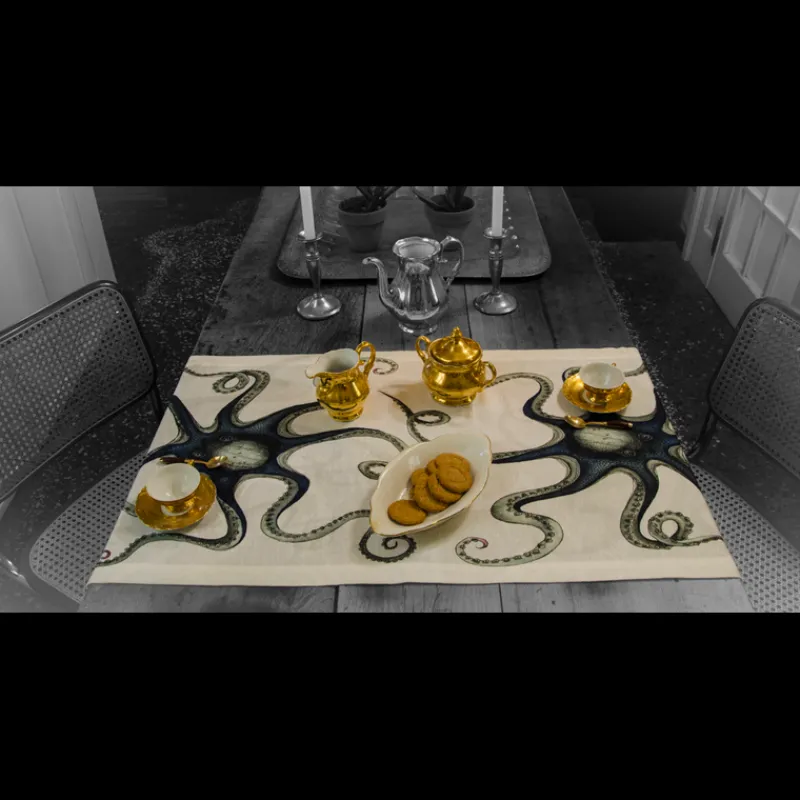 Avec ce chemin de table en lin et coton Polpo d’Arcolaio, votre décoration paraîtra sophistiquée et dégagera une atmosphère originale.