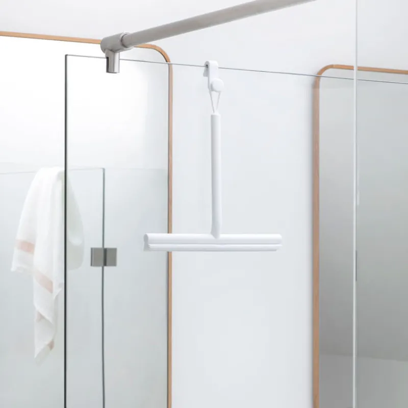 Enfin, une raclette adaptée à votre élégante salle de bains ! Cette raclette de douche en silicone est dotée d’un design minimaliste et d’une praticité maximale. Avec sa brosse d’un côté et son caoutchouc de l’autre, elle permet de nettoyer sans effort la porte et les carreaux de faïence de votre douche. C’est clair ? Pendez-la à la porte de la douche à l’aide du crochet inclus.