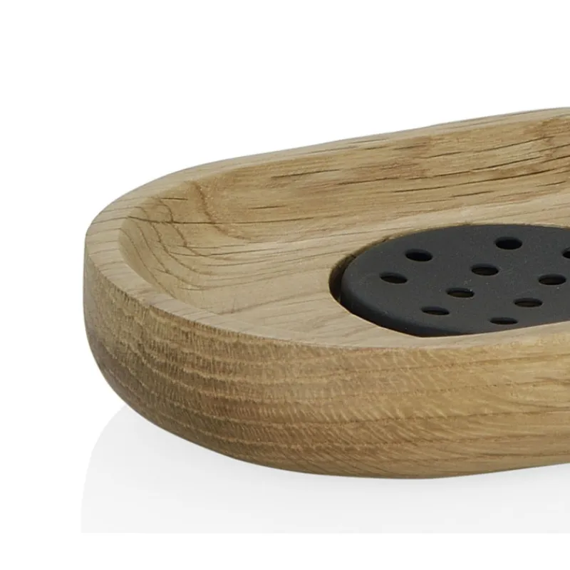 Grâce à son design en bois de chêne, vous pourrez mettre en valeur votre savon, de façon naturelle et élégante. Sa forme ovale lui permet de pouvoir sans problème accueillir un savon rectangulaire ou rond. Il dispose d’une grille en acier inoxydable, pour vous permettre de filtrer les restes d’eau qui peuvent tomber du savon, pour qu’il reste sur un support bien sec.
