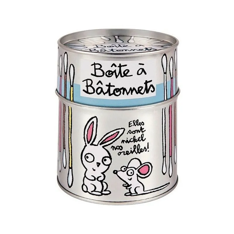 Cette petite boîte en métal de Derrière la porte est parfaite pour ranger des cotons tiges. Amusante et originale, cette petite boite trouvera sa place dans votre salle de bain.