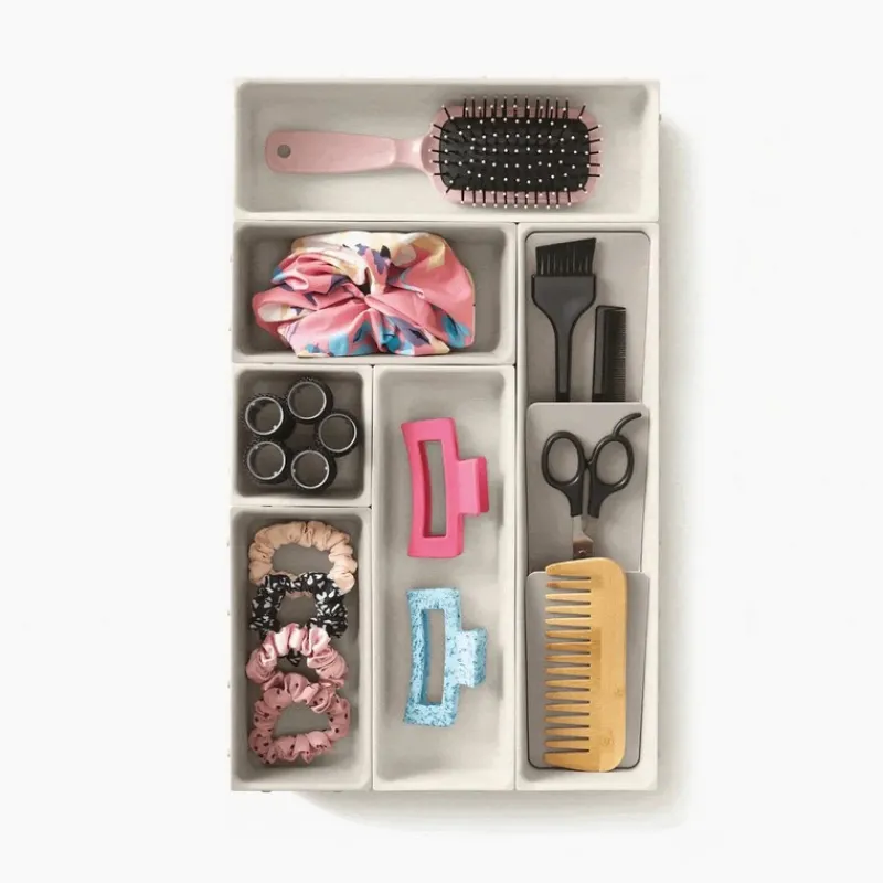 Cet organisateur de tiroir pour maquillage de Joseph Joseph existe avec 7 ou 12 compartiments, selon vos besoins.