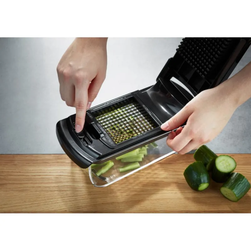 Ce coupe-légumes est un accessoire incontournable de la cuisine. Ses lames ultra tranchantes assurent une coupe sans effort et des résultats uniformes, allant de fin pour les crudités bonnes pour la santé ou pour les garnitures de potage à grossier pour les frites ou les délicieuses potées. Egalement idéal pour découper la feta en cubes.