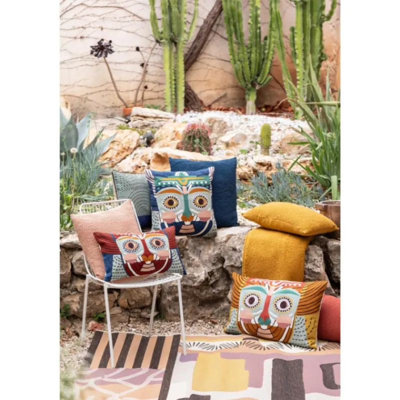 Le coussin Yaku Multico de Vivaraise possède une face décorée d’un masque africain grâce à laquelle il deviendra une pièce forte de votre décoration..