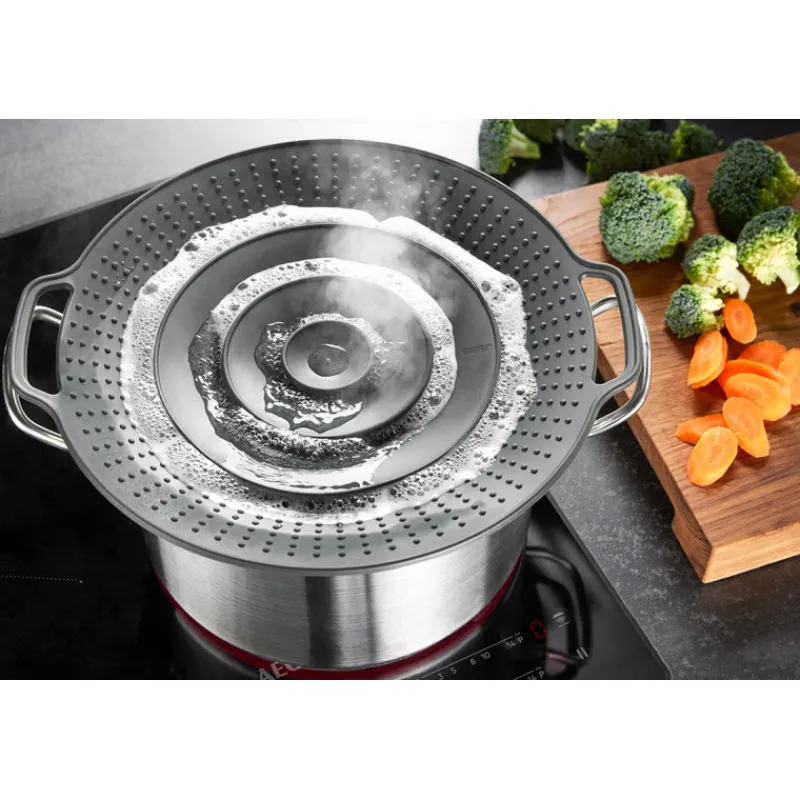 Gefu vous présente son couvercle contre la surcuisson et anti-projections BOLLA. Un couvercle en silicone pratique et efficace que vous garderez à portée de main pour de nombreuses préparations.