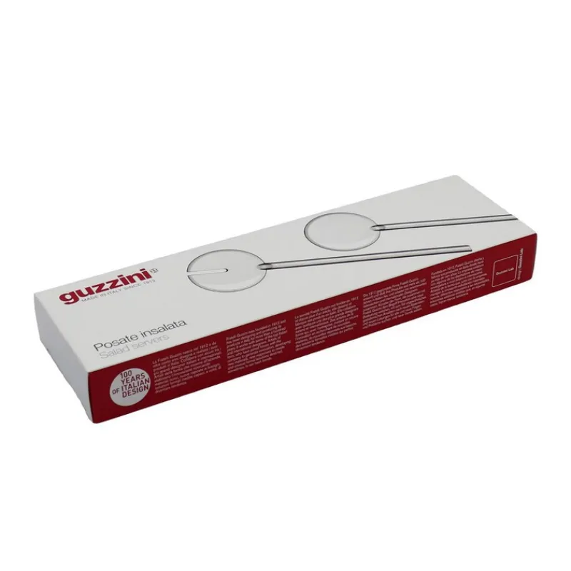 Leur longueur permet de les utiliser avec les deux tailles de saladier de la collection Tiffany. Très résistants, les couverts à salade Guzzini sont adaptés au lave-vaisselle (max 50°C). Ils sont conçus en SMMA, un matériau acrylique hautement transparent et résistant, sans Bisphénol A et recyclable.