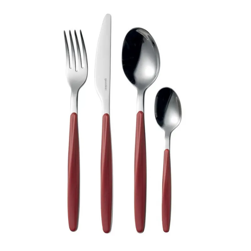 Mettez une pointe d’audace avec les couverts de table My Fusion Rouge de Guzzini. Découvrez l’association élégante de l’acier et l’ABS sur des couverts aux manches allongés et raffinés. Pour sublimer un service en porcelaine ou en grès, le rouge profond de Guzzini est idéal.