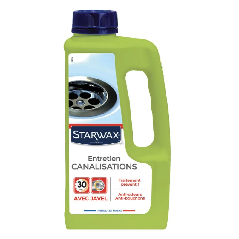 Ce Produit avec javel de Starwax sera idéal pour l’entretien régulier de vos canalisations. Convient pour évier, lavabo, douche et baignoire.