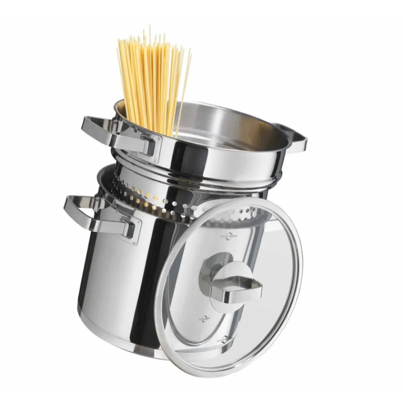 Pour vos spaghettis bolognese, carbonara ou pesto, adoptez ce cuit pâtes en inox de grande capacité de Küchenprofi.