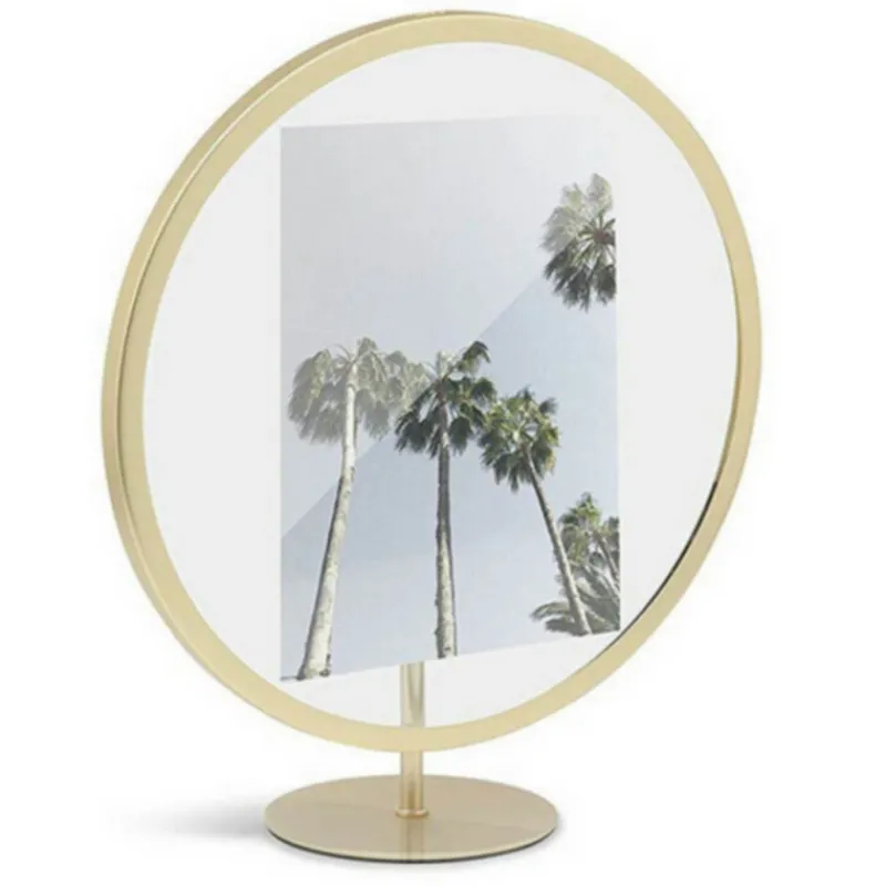 Voici Infinity couleur or de Umbra, c’est un cadre accrocheur qui fait flotter votre photo entre deux vitres tout en ajoutant une nouvelle dimension à votre espace avec sa forme circulaire.