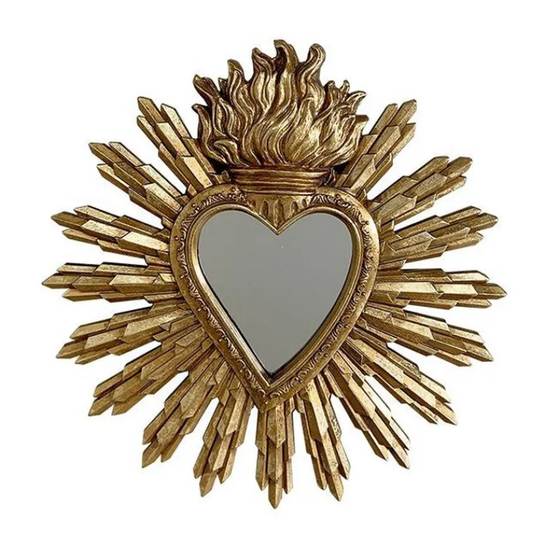 La décoration miroir ex-voto en forme de coeur et de soleil en or de Emdé est un accessoire idéal pour votre intérieur, grâce à sa double fonction, de miroir et de décoration.