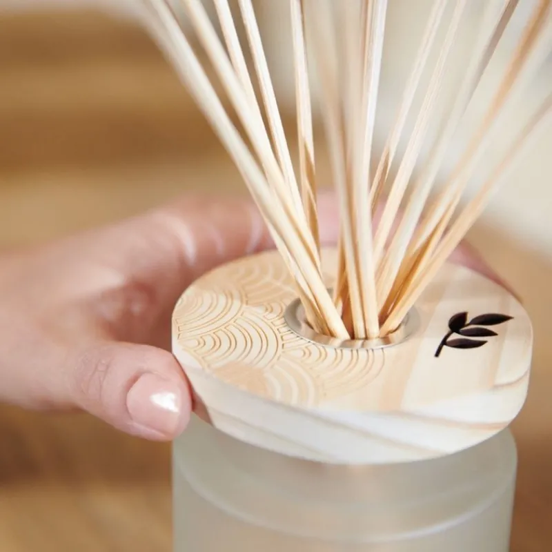 - Insérer les tiges dans le vase. Le parfum se diffuse pendant environ 4 semaines