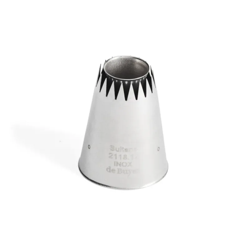 La douille sultane inox à cône rasant De Buyer s’utilise pour réaliser facilement des sablés en forme de couronne cannelée. Vous obtiendrez une magnifique collerette avec l’intérieur évidé.