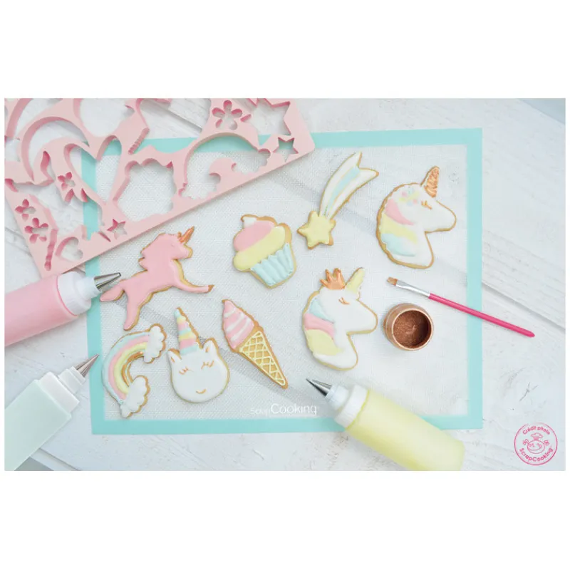 Les 2 squeezers et les 2 douilles à glaçage conviennent parfaitement pour glacer avec précision et facilement des biscuits et ainsi avoir un rendu digne d’un professionnel. Ils sont également pratiques pour décorer vos gâteaux et autres desserts.