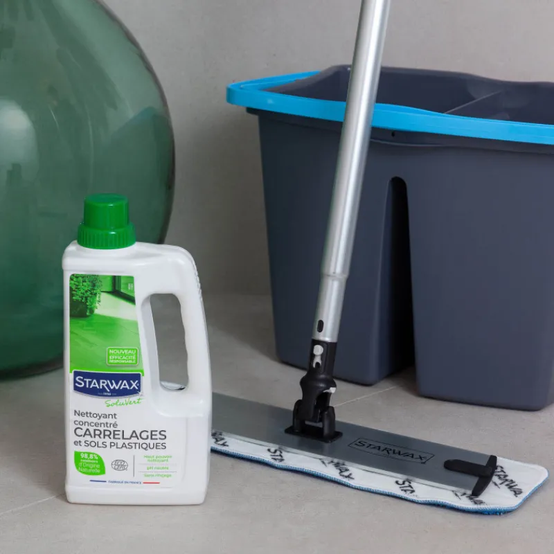 Vous cherchez un nettoyant écologique efficace pour nettoyer facilement vos sols? Starwax s’engage à vos côtés en vous proposant une alternative écologique à ses nettoyants classiques comme avec ce nettoyant concentré pour carrelages et sols plastiques de sa gamme Soluvert.