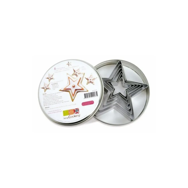 Boîte de 6 emporte-pièces en inox en forme d’étoiles de Scrapcooking.