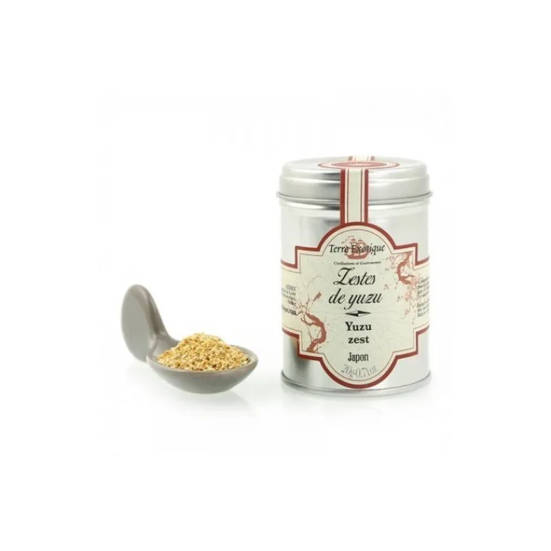 Les zestes de Yuzu de Terre exotique vous serviront donc pour apporter de la fraîcheur et du peps à vos plats. Frais et fruité, il est parfait en association avec les produits de la mer : Tartare de bar, Tartare de thon salade de crevettes etc. Mais aussi pour des préparations au chocolat, des muffins pavot/zeste de yuzu, ou encore de la confiture de fraises avec un peu de yuzu….