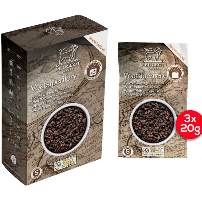 Ce poivre sauvage Voatsiperifery de 60G de Peugeot vous accompagnera dans la réalisation de vos plats.