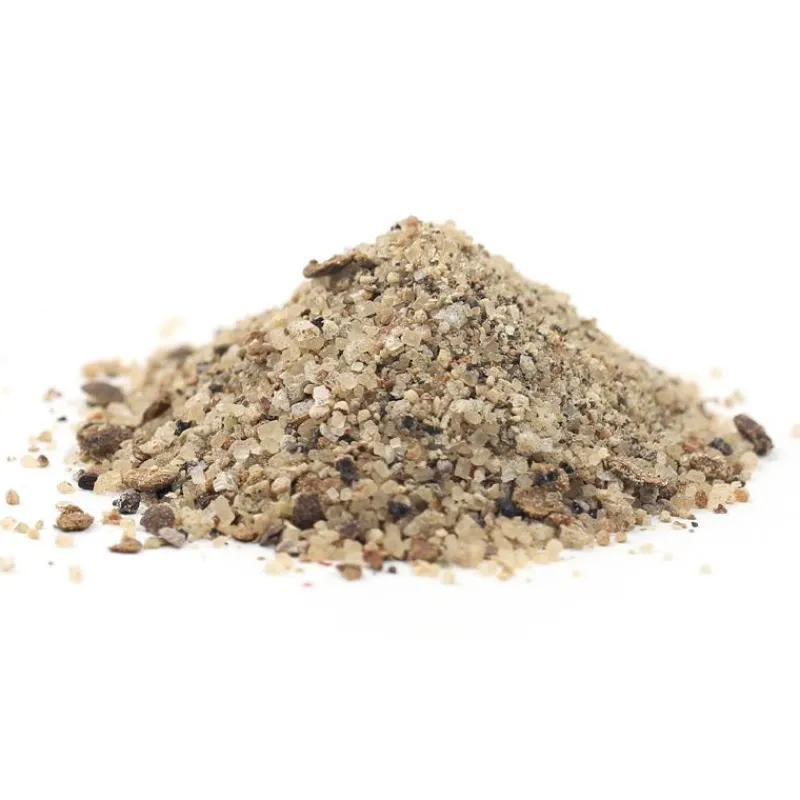 - Ingrédients : Sucre roux, fleur de sel, poivre noir, piment de Jamaïque, baie rose