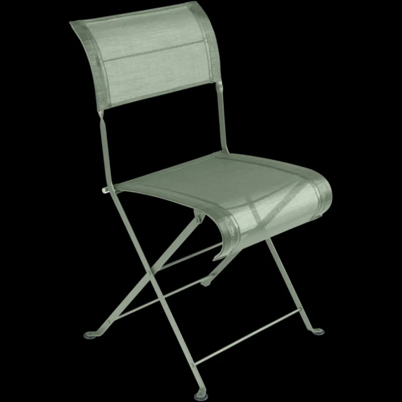 Chaise de jardin Fermob-pliable-en acier laqué de couleur et toile technique d’exterieur indéchirable.