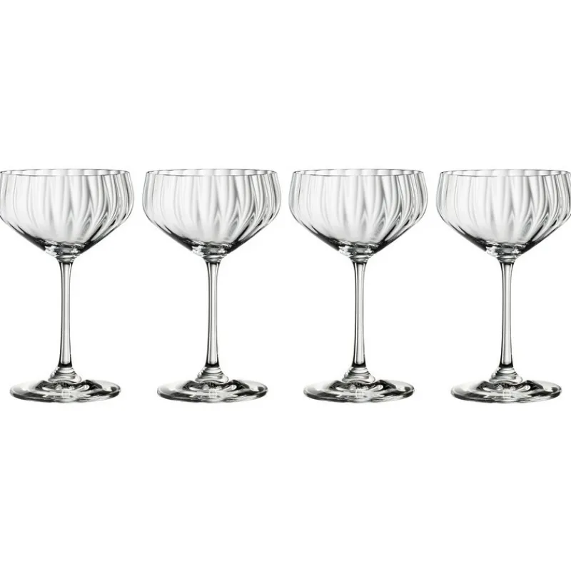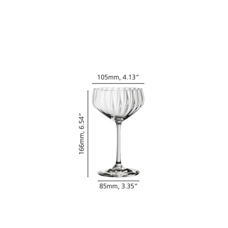 La coupe Lifestyle du verrier allemand Spiegelau est le verre idéal pour vos cocktails et vos effervescents. La collection Lifestyle a une forme de diamant soulignée par des stries verticales.