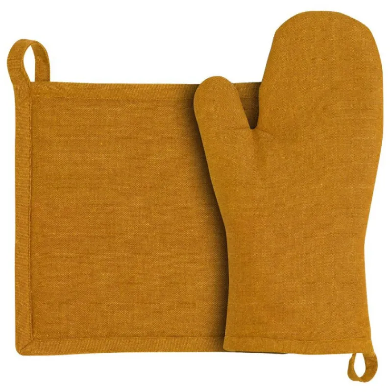 Cet ensemble gant et manique recyclé Jona Ambre de Winkler est le duo idéal pour vous protéger de la chaleur des plats sortant du four ! Le coton de ce lot de gant/manique est en train de vivre une seconde vie grâce à la récupération de chutes de coton collectées dans les usines de fabrication textile.