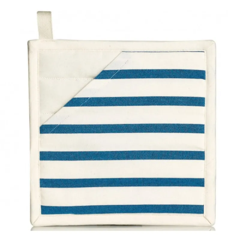 Ambiance marine assurée avec cette manique Nalou et ses rayures bleues intenses. Cette manique 100% coton tissé teint vous donnera des envies d’évasion en mer, tout en protégeant vos mains lors de vos exploits en cuisine !