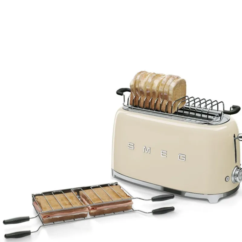 En utilisant ces deux pinces, dans votre toaster 2 fentes extra-large SMEG, vous pourrez chauffer en seulement quelques instants vos différentes préparations. Vous pourrez par exemple préparer des grands sandwichs, des paninis, deux croque-monsieurs en même temps ou encore des toasts !