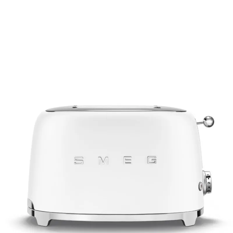 Grille-pain 2 tranches au look rétro des années 50 par SMEG, dans sa nouvelle finition : blanc mat.