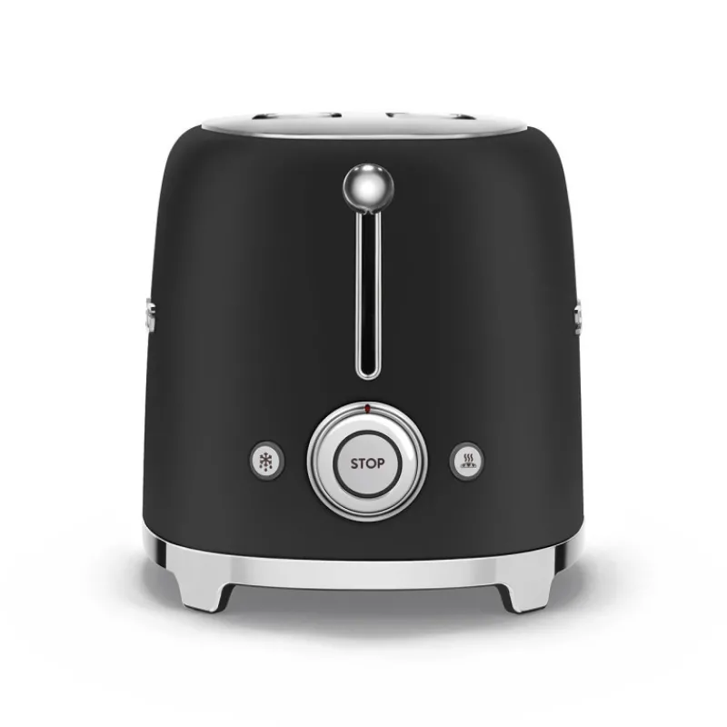 Smeg investit votre cuisine pour votre plus grand plaisir avec ce très élégant toaster années 50 dans son élégante finition noir mat. Ce toaster 2 tranches est le grille-pain qu’il vous faut pour le petit-déjeuner ou pour préparer vos bagels.