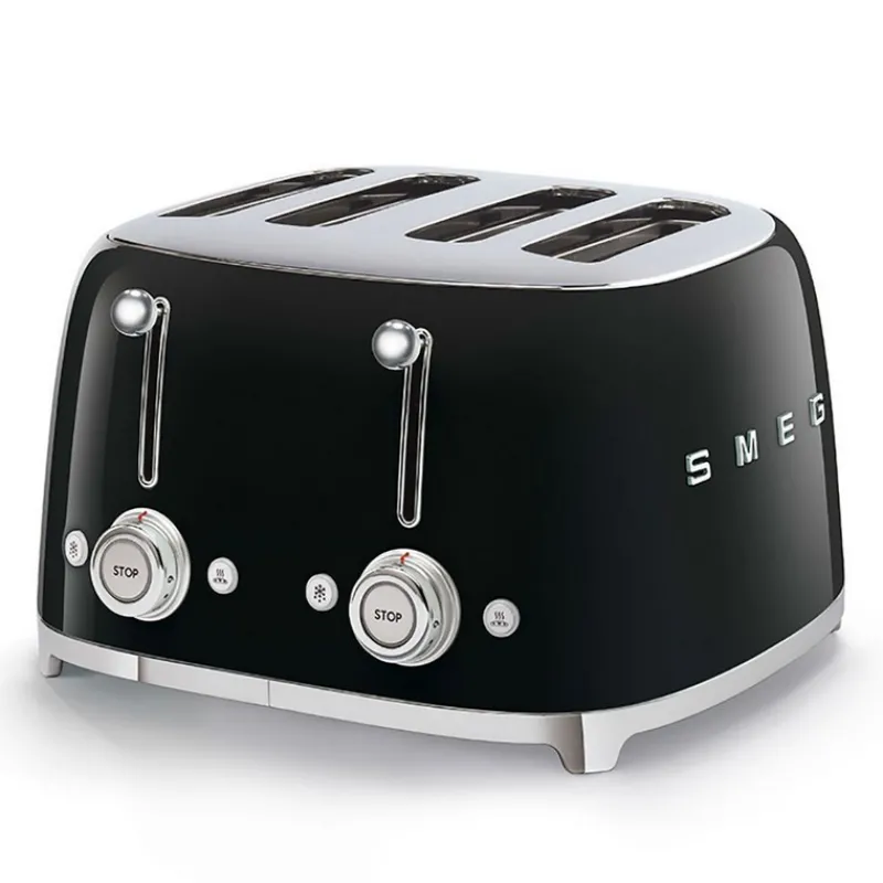 Ce Toaster 4 tranches Années 50 Noir de SMEG est un indispensable si vous aimez avoir des tartines et toasts grillés au petit-déjeuner !