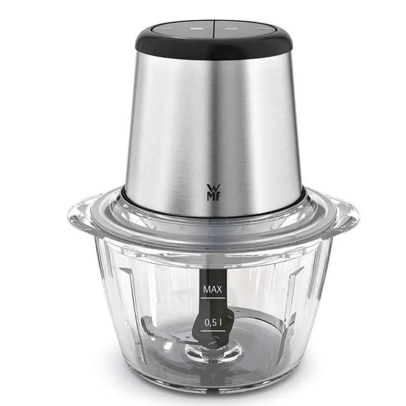 Spécialiste des articles culinaires, de la gastronomie et des arts de la table, la société WMF fabrique depuis plus de 160 des produits réputés pour leur grande qualité. Simplicité, robustesse et design, ils représentent tout ce que l’on apprécie chez les fabricants allemands. Toujours désireuse d’améliorer ses produits, la société WMF met l’accent sur la recherche et l’innovation et elle a développé un acier inoxydable 18/10 aux caractéristique de résistance et de durabilité uniques, le Cromargan® . Alors si vous appréciez les accessoires du quotidien fonctionnels, solides et faciles à vivre, ce hachoir est fait pour vous! Avec son couteau à la technologie Perfect Cut, il hache sans effort et en un tournemain. Pratique et ultra simple à utiliser, il dispose de 2 vitesses sur le dessus pour s’adapter à tous les types d’aliments. Et après utilisation, son bol se nettoie tout simplement au lave-vaisselle. Ce bol est fabriqué en verre, un matériau sain naturellement antibactérien, facile à entretenir et durable. Ne cherchez pas plus longtemps, vous avez trouvé le hachoir que vous attendiez.