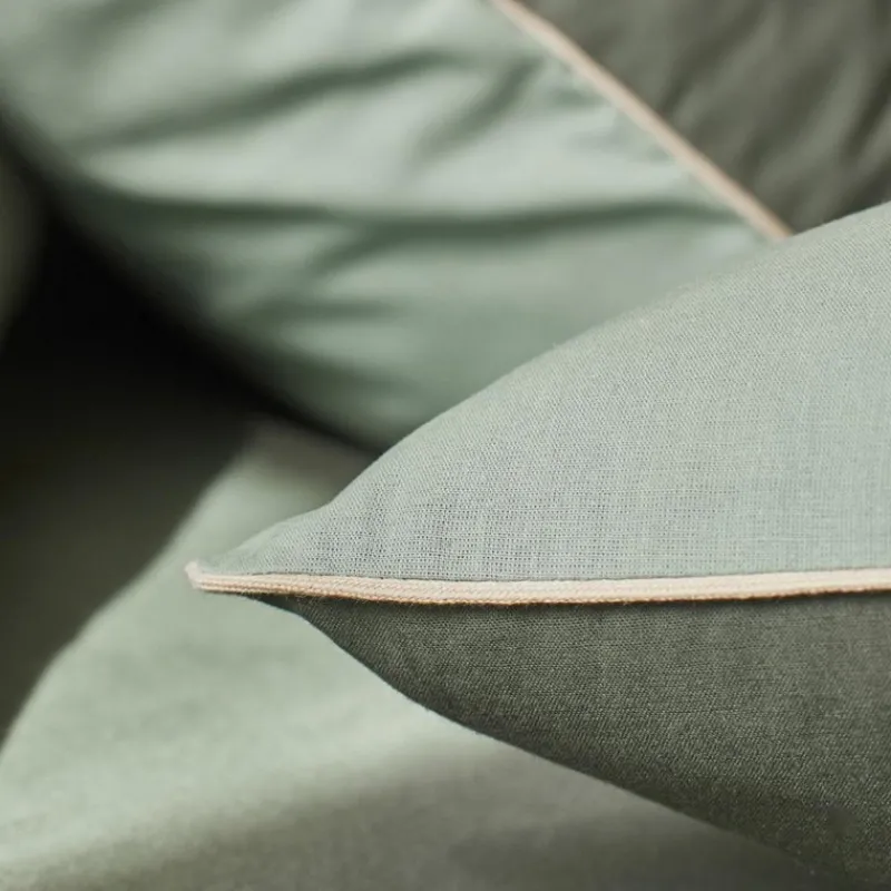 Avec le coloris Palme Aloé, la taie d’oreiller Bons Jours apporte de la fraîcheur à votre univers de repos. Sa finition passepoil en contour souligne son élégance et sa tenue sur le lit.
