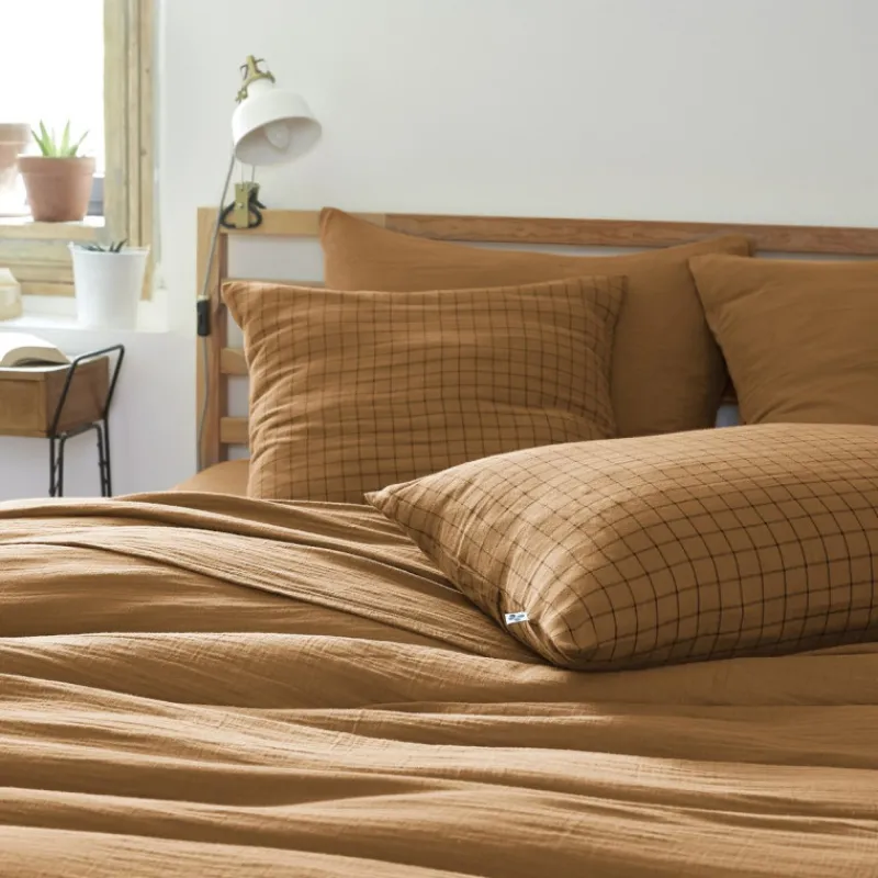 Si vous n’avez jamais dormi dans des draps en gaze de coton, vous allez êtes bluffé par la douceur de cette matière! Découvrez ici la taie d’oreiller Gaïa Mix de L’effet papillon dans son coloris Camel accompagnée de ses élégants petits carreaux.