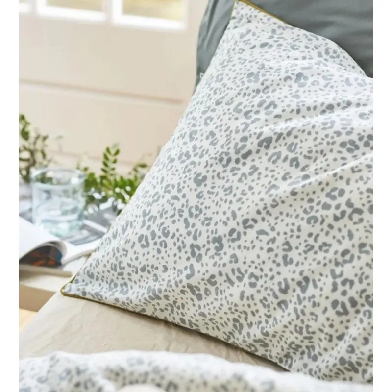 La housse de couette Émilio de Sylvie Thiriez vous enveloppe d’un univers de confort avec cet imprimé motif léopard revisité. En coton lavé imprimé à la douceur incomparable.