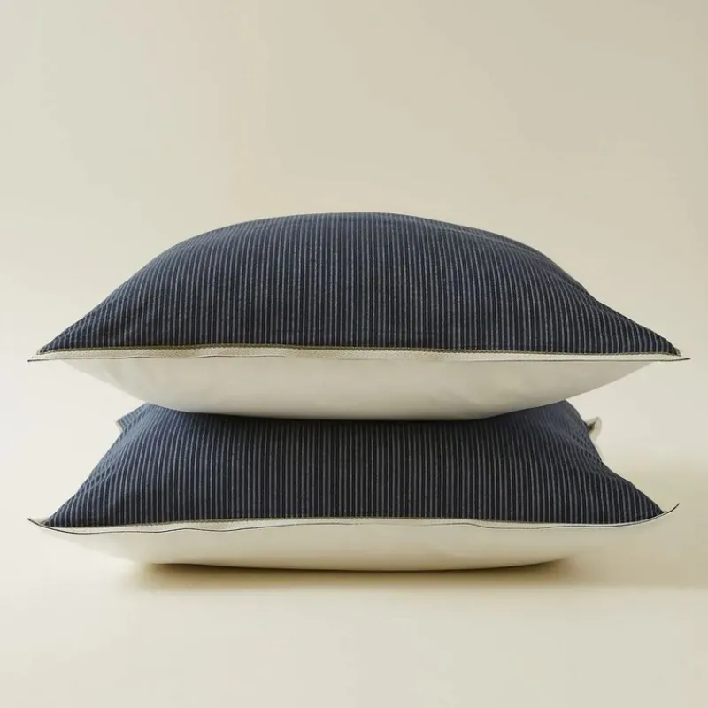 Le coton tissé teint de Sylvie Thiriez est certifié OEKO-TEX® STANDARD 100. Il est sans substances nocives, ni pour l’homme, ni pour l’environnement. La taie d’oreiller Brixton est disponible en format carré de 65 x 65 cm et en format rectangulaire de 50 x 70 cm.