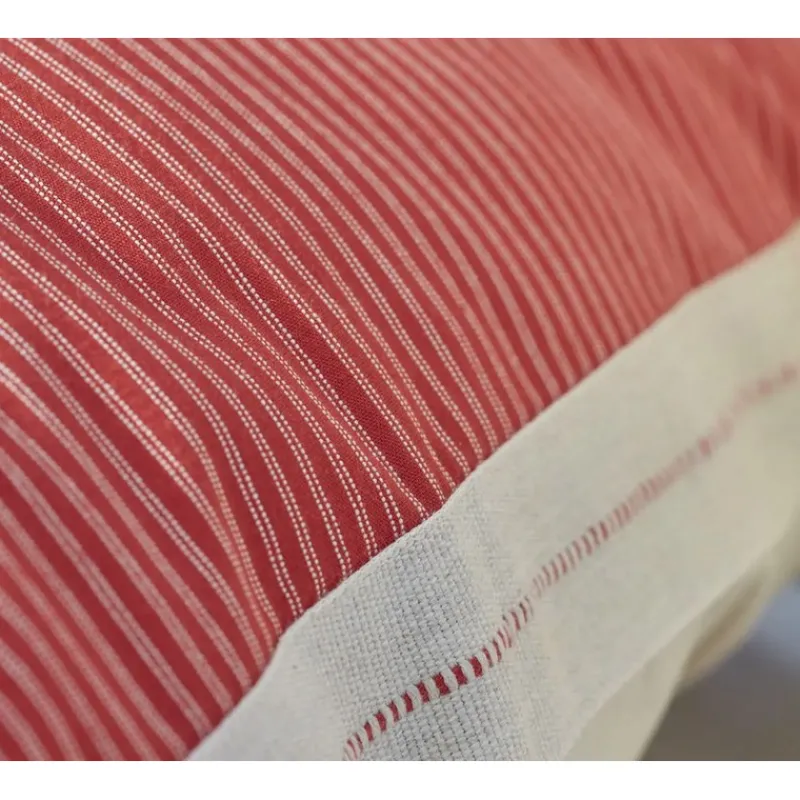 Découvrez la collection Appel du large dessinée par les stylistes de la maison Sylvie Thiriez. Confectionnée dans un tissu rayé à la couleur rouge intense, cette taie d’oreiller est en coton tissé teint.