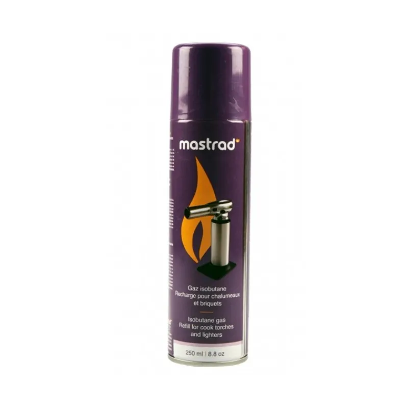 Recharge de gaz pour chalumeau par Mastrad. Cette recharge est compatible avec tous les types de chalumeaux de cuisine. Il vous servira également à recharger vos briquets à gaz.