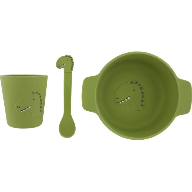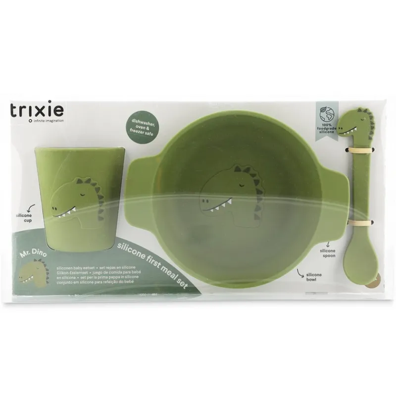 Craquez sans plus tarder pour le set repas en silicone Mr Dino de la marque Trixie ! Ce set est composé de l’essentiel pour passer un bon moment à table !