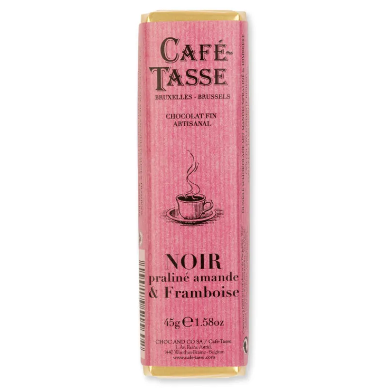 Cette Barre de chocolat Noir praliné Amande et Framboise de Café Tasse vous fera craquer, grâce à sa qualité artisanale !