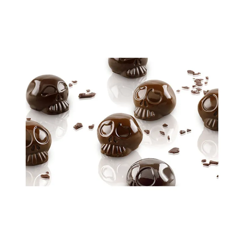 Avec le moule chocolat Amleto de Silikomart, vous allez créer de petites gourmandises en chocolat qui surprendront par leur forme originale en 3D. Réussir de délicieuses et effroyables petites têtes de mort en chocolat sera pour vous d’une simplicité déconcertante grâce à ce moule en silicone dédié aux chocolats 3D.