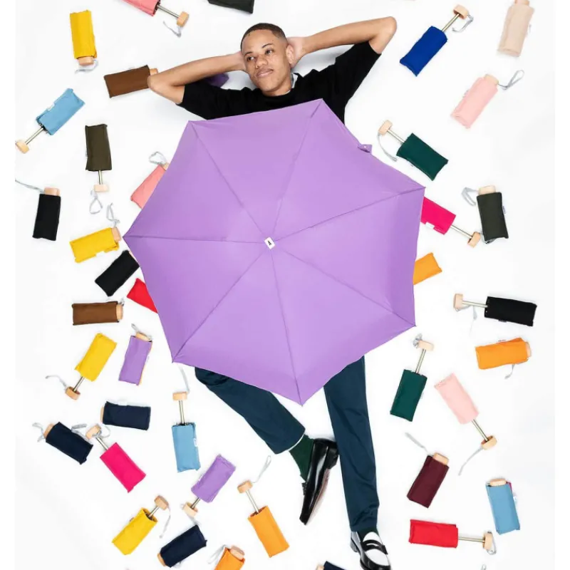 Sans oublier, bien sûr, ses qualités de protection ! Ses 7 baleines (contre 6 pour les micro-parapluies ordinaires) lui confèrent un diamètre large. En fibre de verre et en carbone, elles sont à la fois solides et flexibles, pour une meilleure résistance au vent. La toile en polyester offre une déperlance naturelle et un séchage rapide. Le mat, en aluminium et en titane se plie très facilement, en cinq sections. Enfin, la jolie poignée en érable finit parfaitement ce bel objet, qui se glissera avec discrétion dans n’importe quel sac. On attendrait presque la pluie avec impatience.